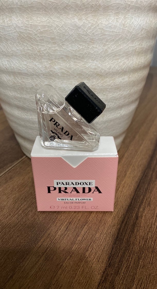 Prada Paradoxe Virtual Flower kadın parfümü, 7 ml şişede çiçeksi koku sunar. Kompakt ve şık tasarıma sahiptir. Hiç kullanılmadı