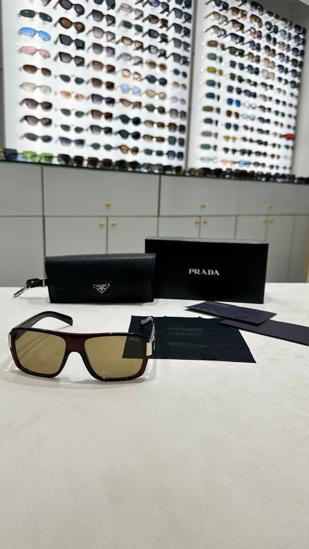 Parlak koyu kahverengi Prada kadın güneş gözlüğü, klasik sokak stili ve trend rahat görünüm için uygundur. Kılıf ve kutu dahildir.
