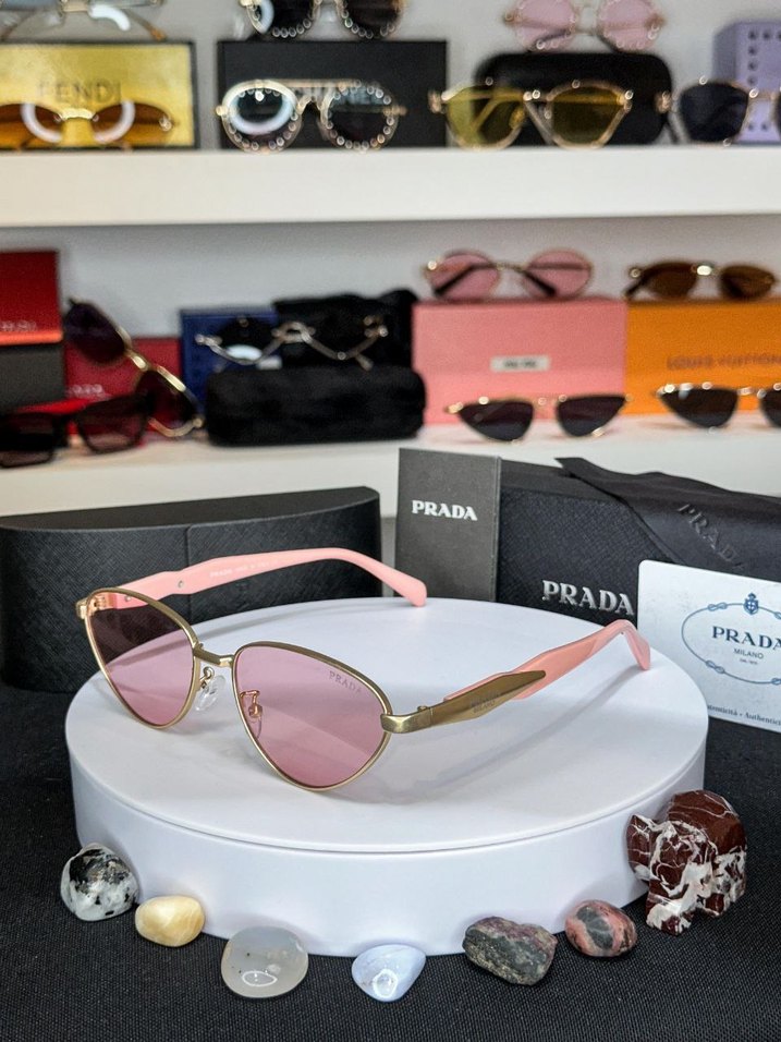 Parlak pembe tonlarda, Prada marka, Paris etkili, trend sokak stili kadın güneş gözlüğü. Rahat ve şık kombinlere uygun.