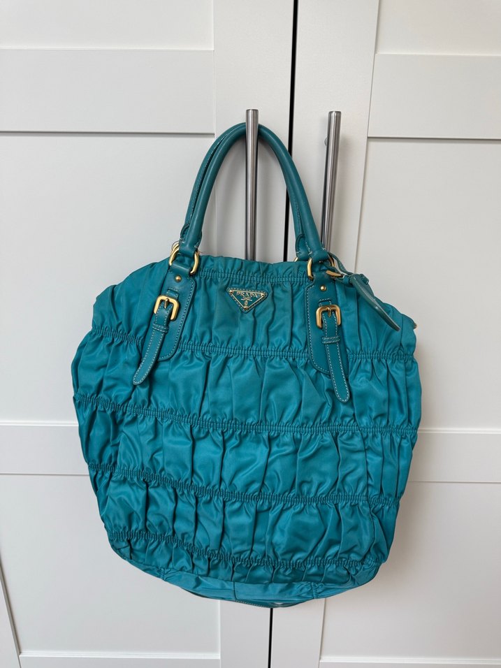 Prada Parlak Turkuaz Pliseli Kadın Çanta