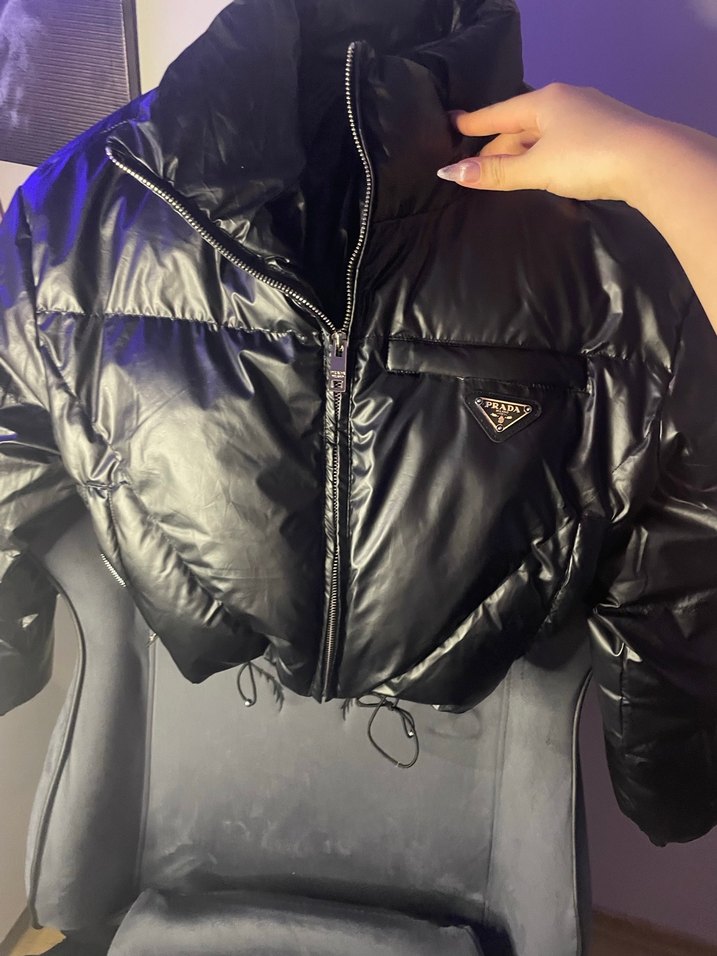 Prada Siyah Deri Fermuarlı ayarlanabilirli mont