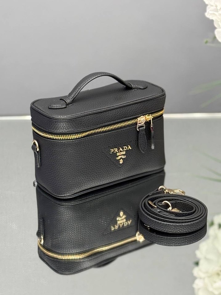 Prada siyah deri kadın çanta, fermuarlı kapanış ve çıkarılabilir askı ile modern klasik tarzda günlük kullanım için şık ve kullanışlıdır.