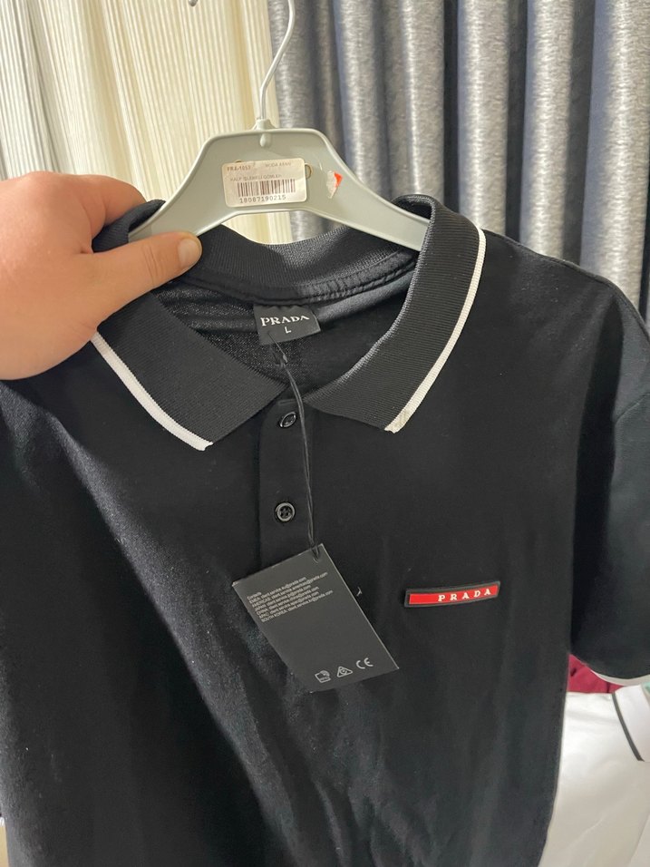 Prada Siyah Düğmeli Polo Yaka Tişört