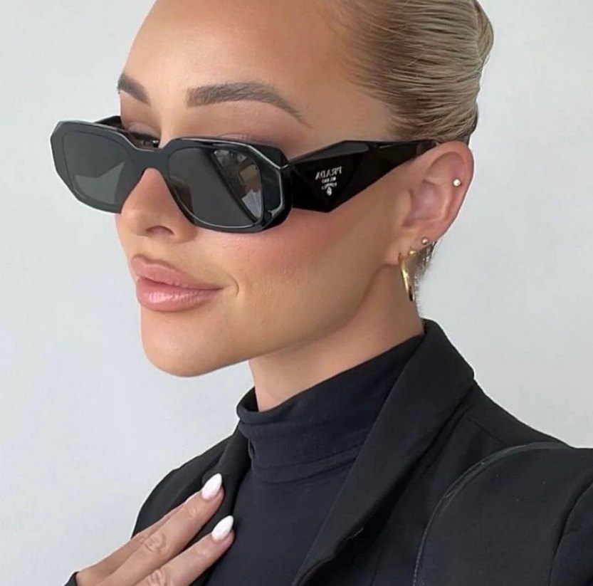 Prada siyah renkte, klasik sokak stili ve zahmetsiz şıklık sunan cesur kadın güneş gözlüğü. ️