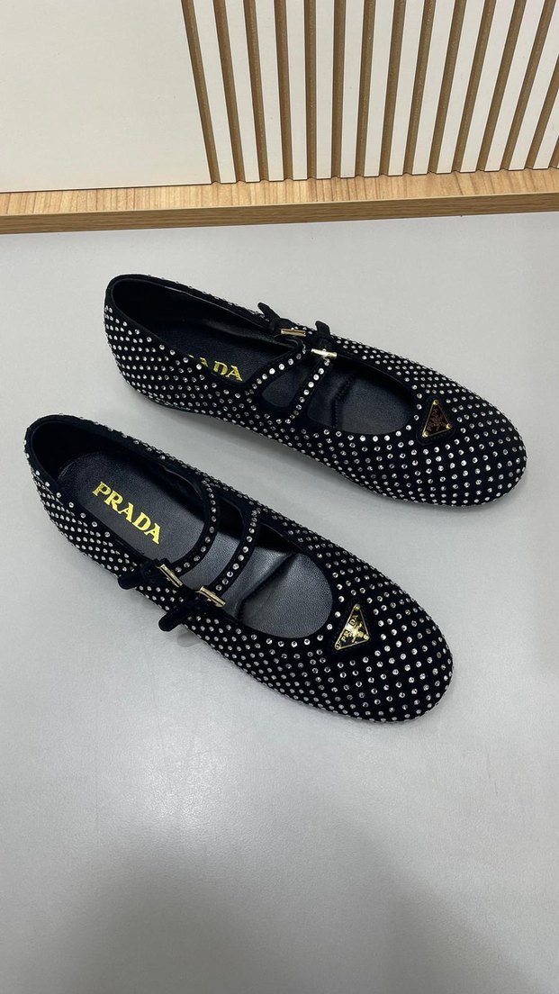 Prada Siyah Puantiyeli Tokalı Kadın Babet
