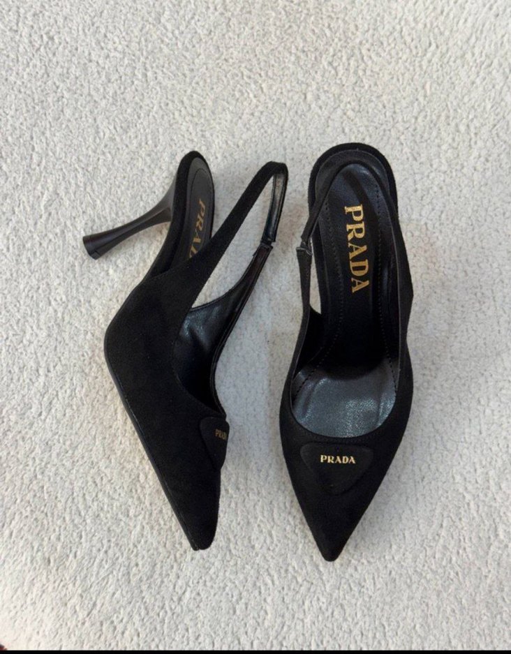 Prada steletto 37 38 39 40 Tam kalıp Suet- nubulkumaş Prada baskılı kutulu Topuk Punto 7 cm