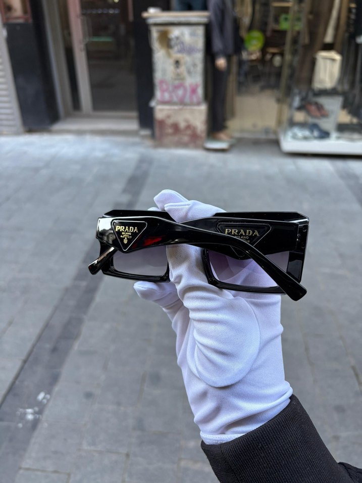 Prada kadın gözlüğü, siyah çerçeve ve transparan detaylarla avant-garde tarzı ve streetwear etkisini birleştiriyor. Trend belirleyiciler için ideal. ️