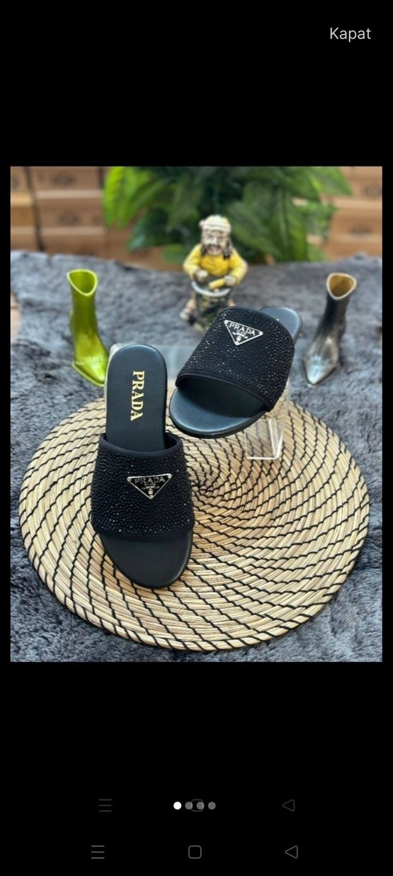 Prada siyah yılan desenli terlikler, dolgu topuk ve cırt cırtlı bant içerir. Kauçuk malzemeden üretilmiş, günlük kullanıma uygun rahat ve şık sokak tarzı ayakkabılar.