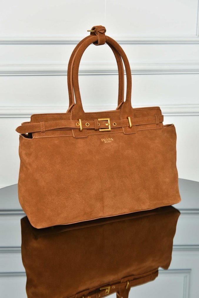 PRADA - Suede Handbag Kadın Bej Süet Kemerli Çanta