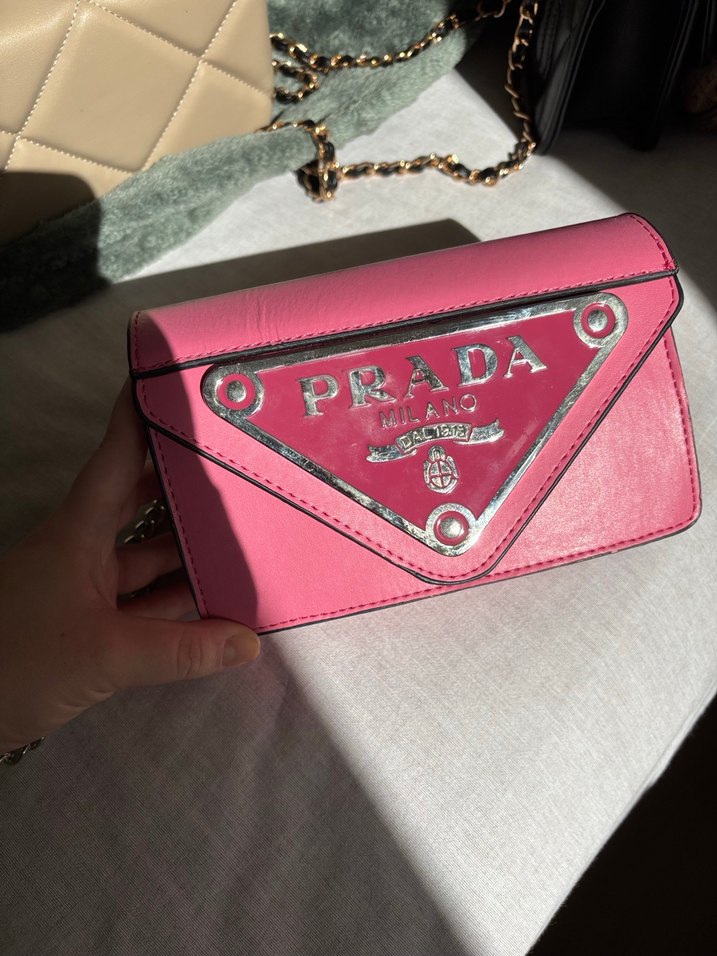 Prada Milano imitasyon pembe fuşya askılı zincirli çanta. Orijinal degildir