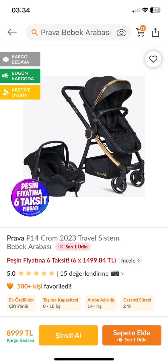 Prava P14 Crom 2023 siyah bebek arabası, rahat oturma alanı . Ayarlanabilir tutma kolu ve geniş saklama sepeti bulunur. Puseti yoktur