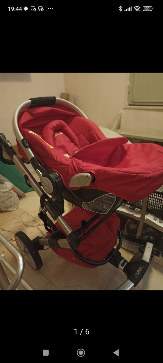 prego kırmızı oturma alanı ve gri çerçeve detaylarına sahip bebek arabası, konforlu ve kullanımı kolaydır. Yumuşak oturma yeri ve sağlam tekerlekleri vardır.