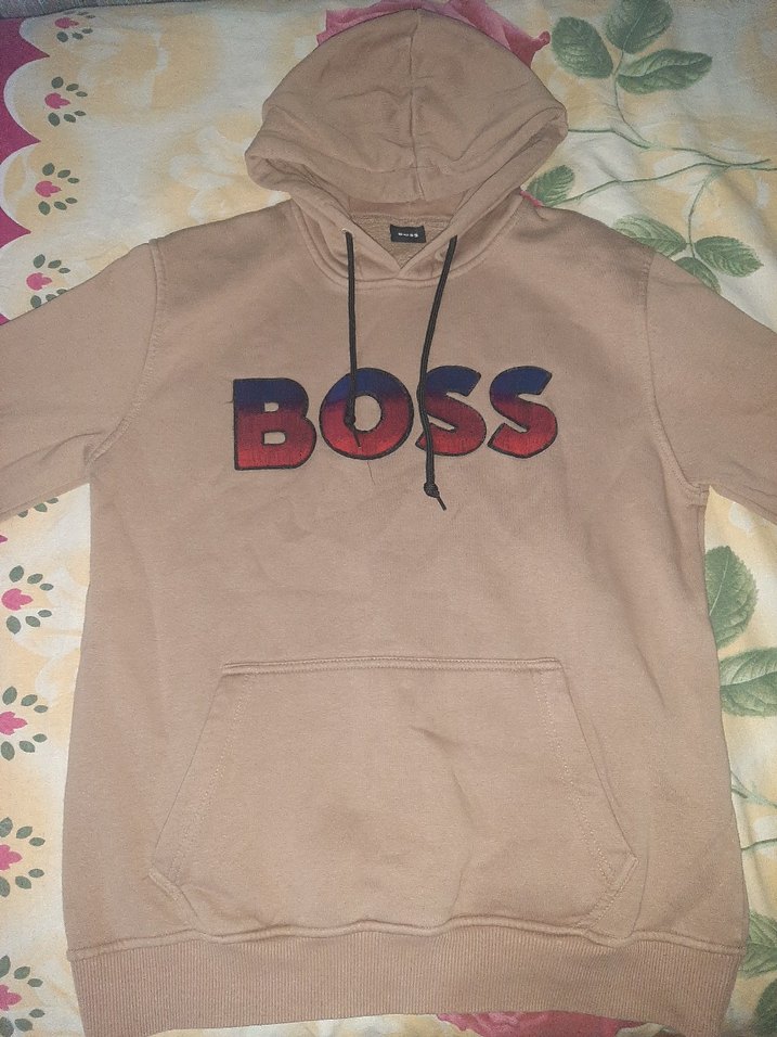 Baskılı BOSS logosu ve ön cepli, uzun kollu kahverengi kapüşonlu sweatshirt, rahat bol kesim ve yumuşak kumaş ile günlük kullanıma uygun.Ürün hiç kullanılmadı ve yenidir.Ürün Orjinal ve ithal Boss marka sweat-shirt'tir. Ürünün içersinde terleyince bedeninize yapışmasına neden olan ve kişiyi rahatsız eden tüyler yıkama ile arındırılmıştır. Ürün teslim edilmeden önce yıkanmaktadır.