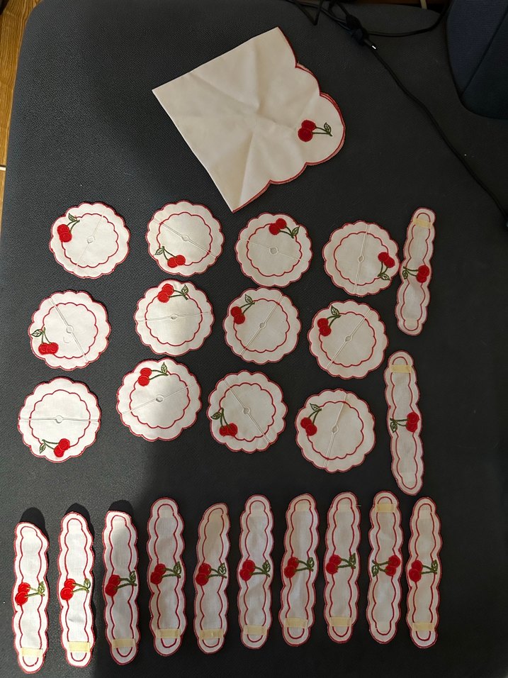 PREMIUM ÇEYİZLİK EL İŞİ PİKO SET ✨ Geleneksel Türk Çeyiz Sanatı – Nadir & Koleksiyonluk Zamana meydan okuyan, tamamı el emeği bu özel çeyiz seti; eski Türk çeyiz kültürünün en zarif ve en değerli örneklerindendir. Günümüzde artık neredeyse üretilmeyen piko dikiş tekniği ve ince el işlemeleriyle üst segment bir parçadır. Bu set, sıradan mutfak tekstilleriyle kıyaslanamaz; sandık çeyizi, koleksiyonluk ve özel sofralar için hazırlanmış premium bir çalışmadır. ✨ SET İÇERİĞİ ️ El işleme yuvarlak peçetelikler El işleme çatal–kaşıklıklar Piko kenarlı büyük servis / peçete parçası ✔️ Tamamı el işi – seri üretim değildir ✔️ Geleneksel piko kenar dikişi ✔️ İnce ve düzgün kiraz motif nakışı ✔️ Beyaz zemin üzerine kırmızı & yeşil asil kontrast ✔️ Günümüzde nadir bulunan eski dönem işçiliğ