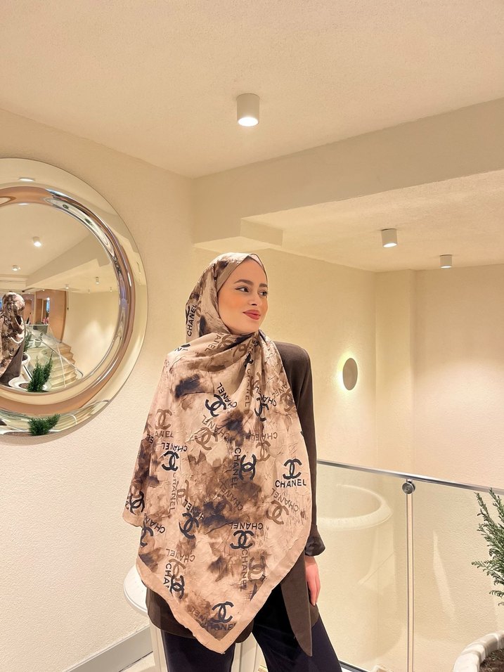 Hafif kahverengi, saten dokulu, drapeli kadın şalı, mütevazı sokak giyimi ve bohem tarzı için uygun.