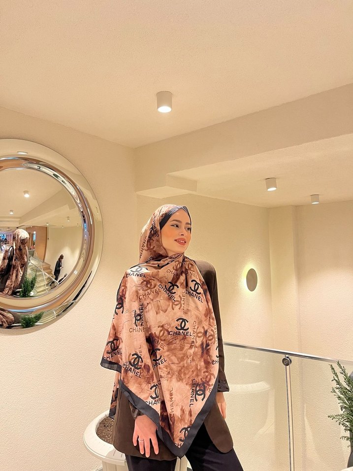 Kadın kahverengi dökümlü şal, rahat ve şık bir görünüm sunar, bohem ve sokak stiline uygundur.