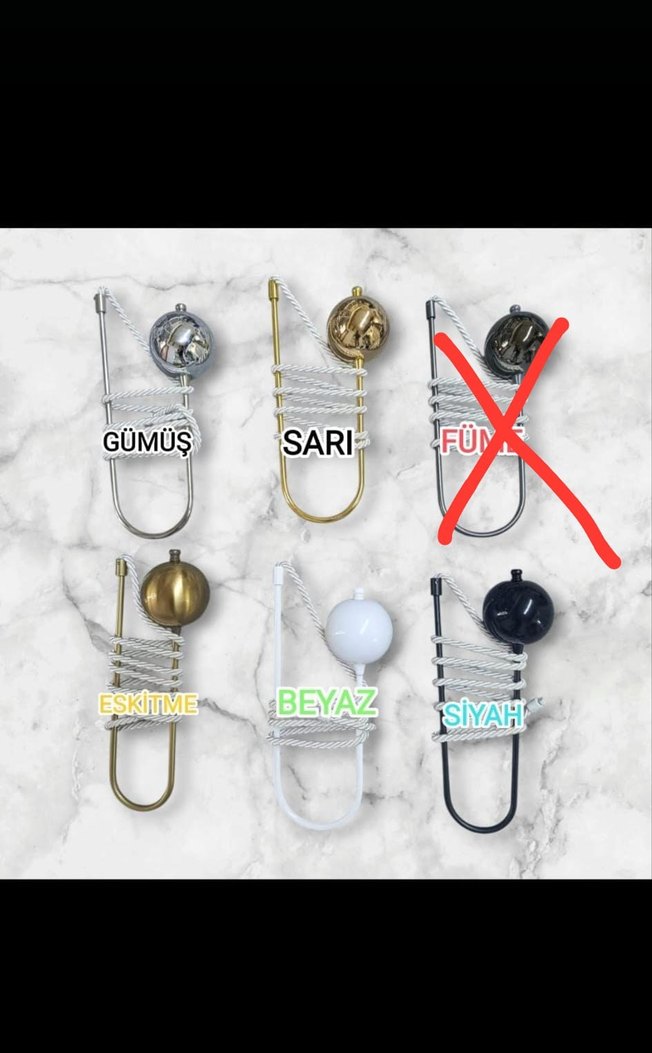 “Stok durumuna göre renk ve model değişiklik gösterebilir. Sipariş öncesi bilgi almanızı rica ederiz.” Şık parlak gold metal tasarım, kornişten kolay takılır. Perdeleri estetik şekilde toplar ve “hayalet” detayıyla dekorasyonunuza zarafet katar.