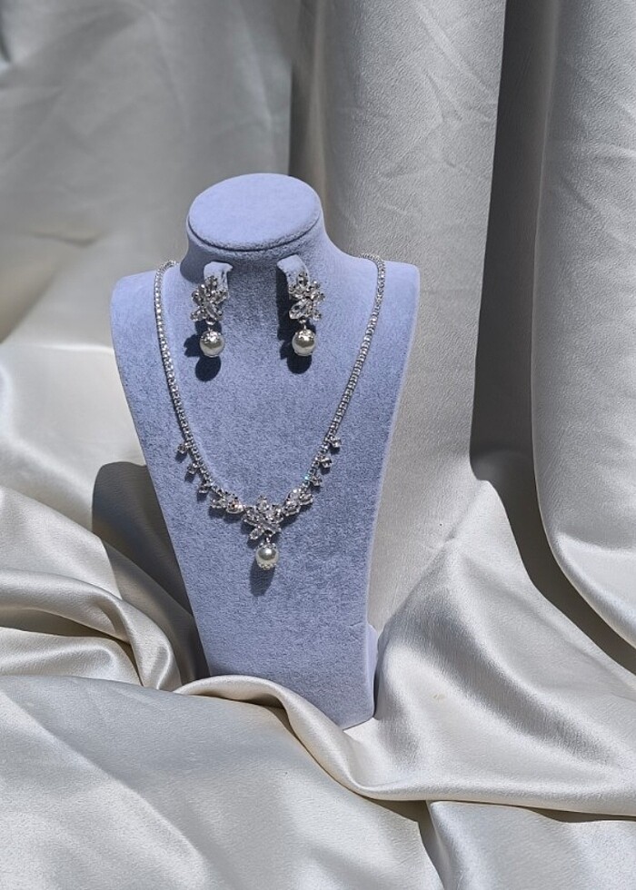 Zirkon ve inci uyumu tamamı Zirkon Taşlı Gelin seti