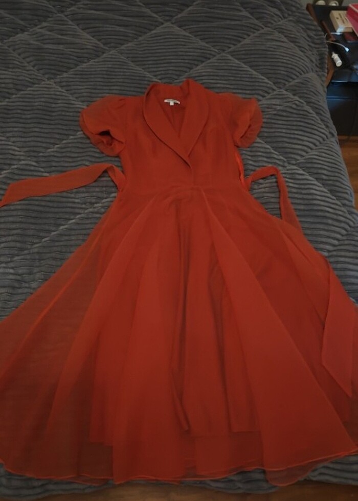 Tarçın rengi midi boy prenses gibi hissettiren bir abiye. Bir kez giydim. Hiçbir problemi yoktur. Alan mutlulukla kullansın. Yakaya bir çıtçıt gerekebilir.