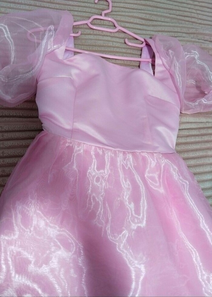Prenses detaylı pembe saten tül elbise