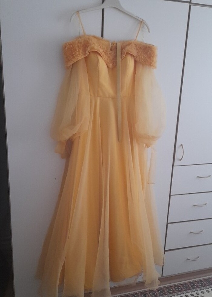 Sarı abiye elbise el bileği ayarlanabiliyor