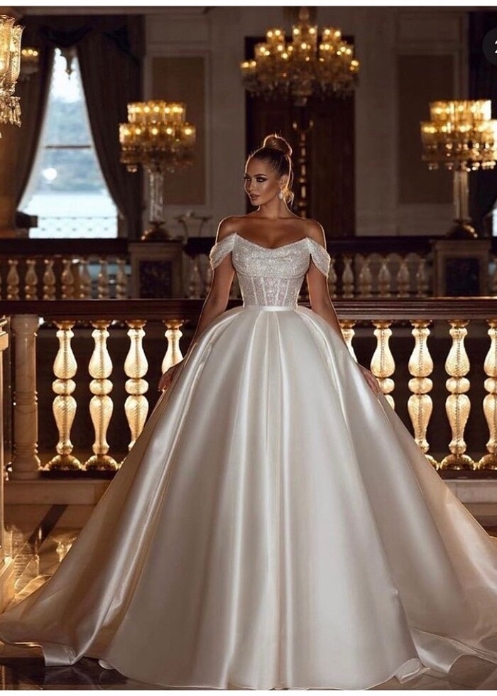 Ürün Çorlu-Mesreves gelinlikte özel olarak dikildi. 1.58 boy 60 kiloyum, arkası kuyruklu, üstü boncuk taş işlemelidir. Tacıyla beraber göndereceğim, tek sorunu kuru temizleme yapılmadı, onun haricinde herhangi Bir yerinde defosu yoktur.