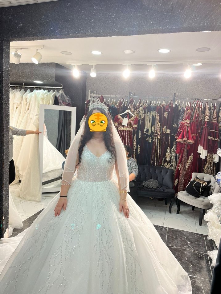 Prenses model gelinlik beden etiketinde 40 beden yazıyor ama kalıbı oldukça geniş bir model ben 46 bedendim normalde bu gelinliği giydiğim sırada o beden aralığındaki gelinliklere bakıyordum yani 85-86 kiloydum gelinliği giydiğim sırada. Full simli bir model hafif bir kuyruğu var ince askılı normalde ben kollarımın belirli bölgesini kapatması için ek tül taktırdım dileyen çıkarttırabilirde kuru temizleme yapılmadı.