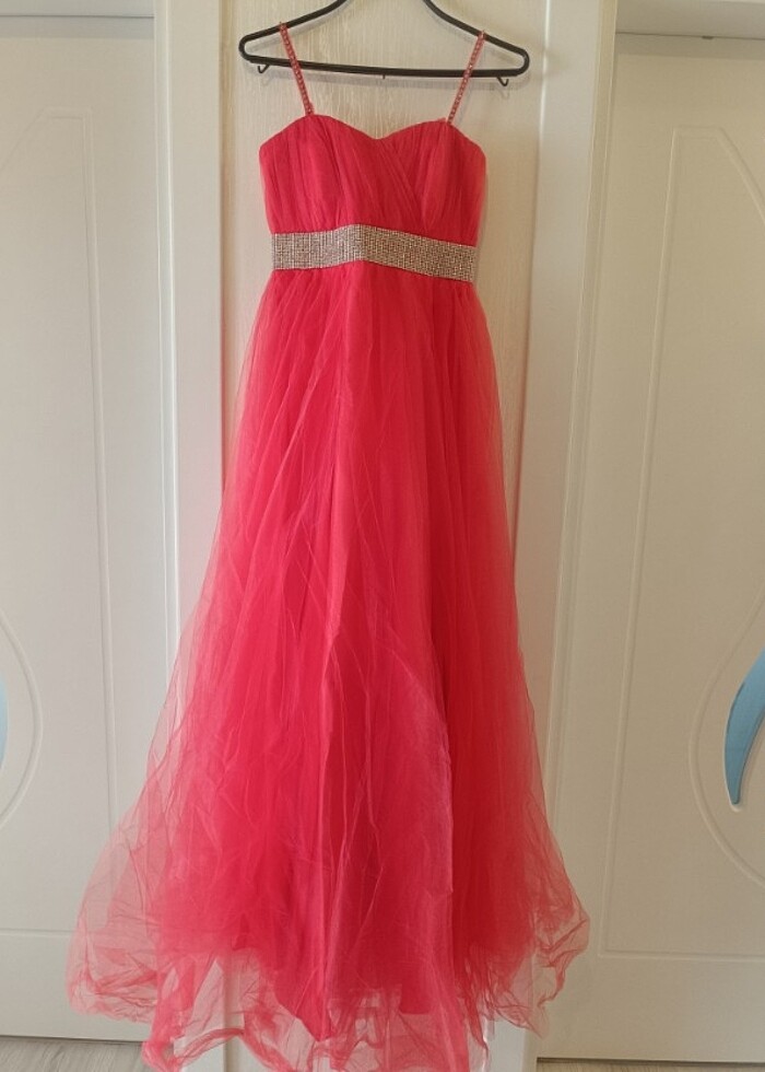 Ürünü bir kez giydim prenses model nar çiçeği tül gece elbisesi