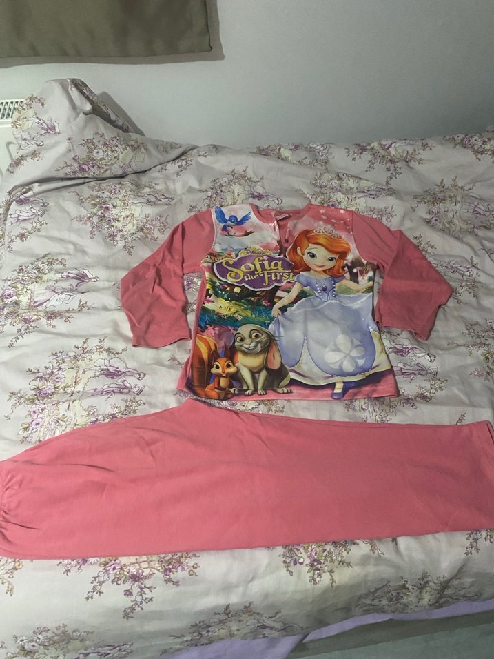 Pembe uzun kollu kız çocuk tişörtü, bol kesim ve yuvarlak yakaya sahiptir. Pop kültür baskılı, yumuşak ve sıcak örme kumaştan yapılmıştır. 7/8 yaş paçasında sökük vardı elle teğelledim