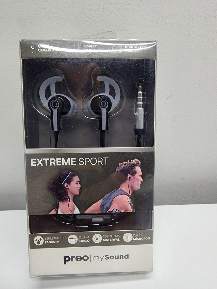 Preo MySound siyah kulak içi kulaklık, spor için uygun, sağlam tutuş, dayanıklı malzeme ve dahili mikrofon içerir .