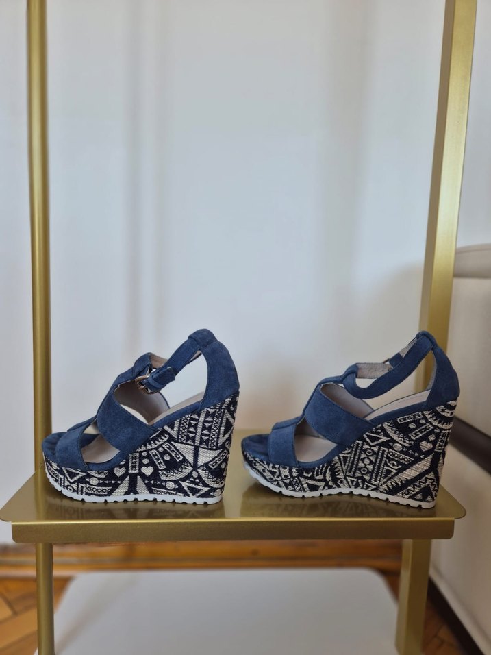 Pretty Nana marka, platform topuklu, tokalı ve kauçuk malzemeden yapılmış, koyu mavi renkli, topuğu desenli kadın ayakkabısı. Sadece 1 kez giyilmiştir,hiçbir sorunu yoktur.