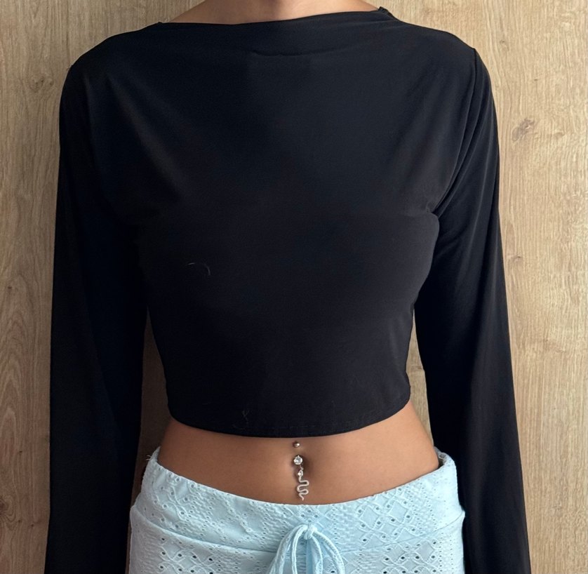 Prettylittlething sırt detaylı siyah bluz
