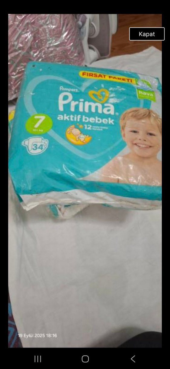 Prima Aktif Bebek hava özellikli 7 numara, 34 adet bez paketi, hareketli bebekler için uygundur. ambalaj hasatli ️