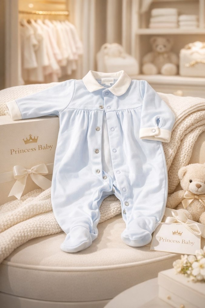 Pastel mavi renkte, uzun kollu, yakalı ve düğmeli bebek tulumu. Yumuşak kumaştan üretilmiştir, rahat ve sade ve şık bir tasarıma sahiptir.