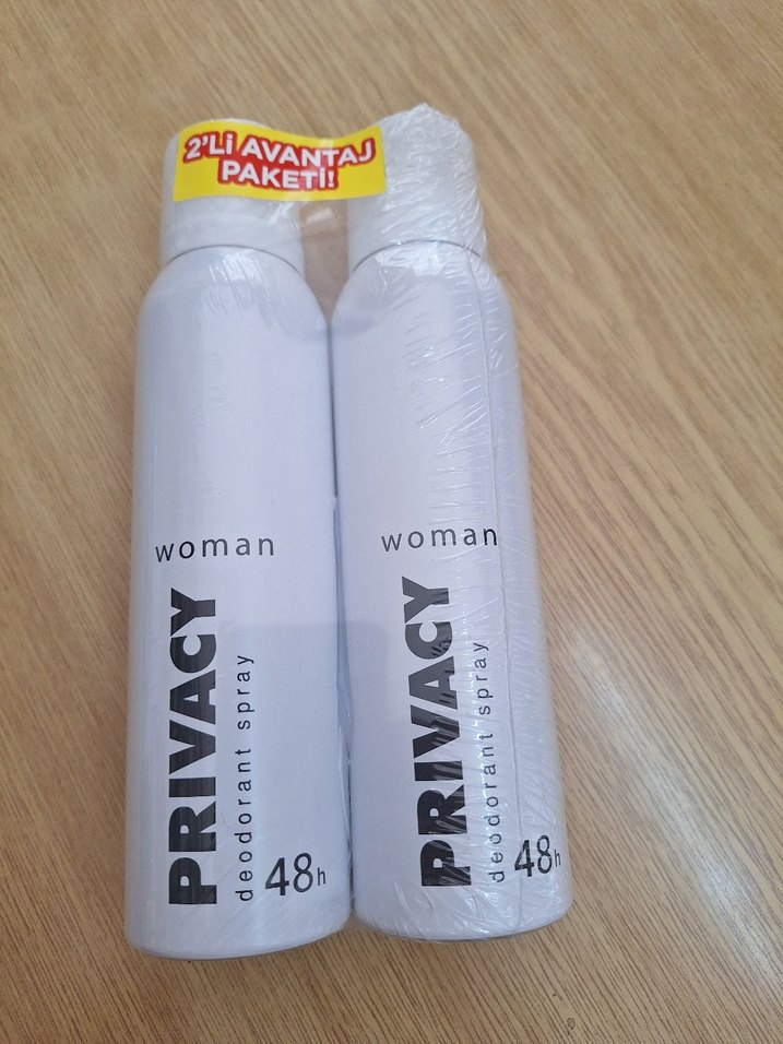 Privacy kadın deodorant spreyi 48 saat koruma sağlar. Bu pakette 2 adet deodorant bulunmaktadır.
