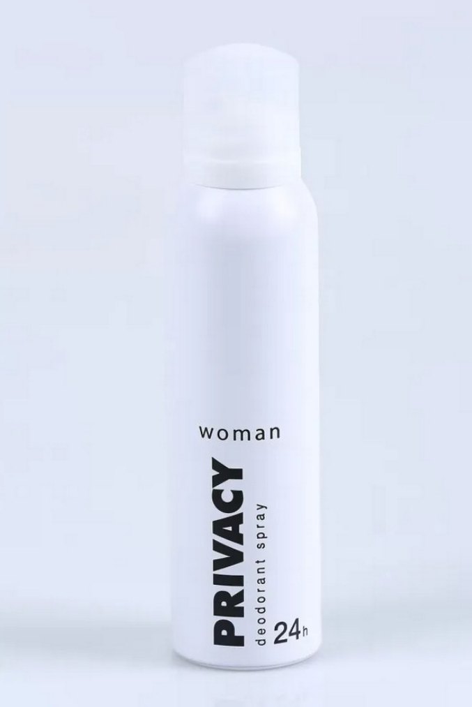 Privacy Woman deodorant spreyi, 24 saat tazelik ve koruma sağlar. Kadınlar için tasarlanmış olup gün boyu güven verir.