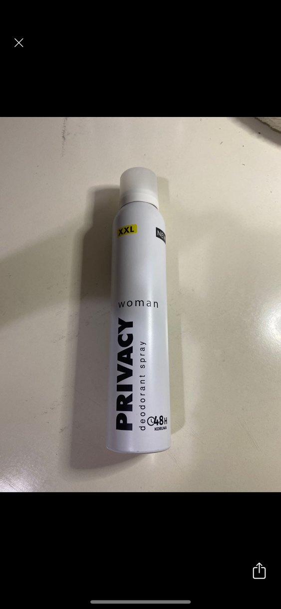 Privacy Woman deodorant spreyi 48 saat tazelik ve koruma sağlar. XXL boyutu kadınlar için uzun süreli kullanım sunar.