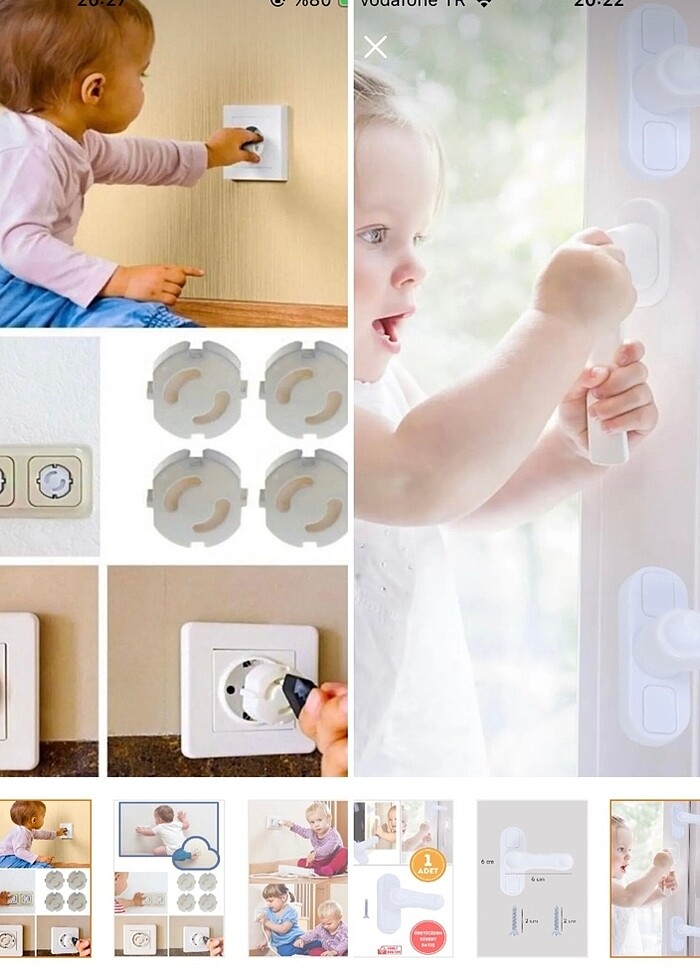 Çocuk güvenliği için 6 adet priz kapatıcı kapağı ve 4 adet pencere kapatıcı koruyucusu. Yeni hiç kullanılmadı. Toplu fiyattır.