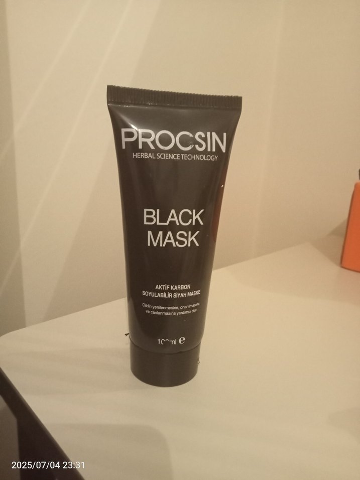 Procsin aktif karbon içeren siyah maske, cildi derinlemesine temizler ve yeniler. 100 ml tüpte sunulmaktadır. içerisinde 45 Ml kadar vardır bayağı kullanıldı denemek için alınabilir