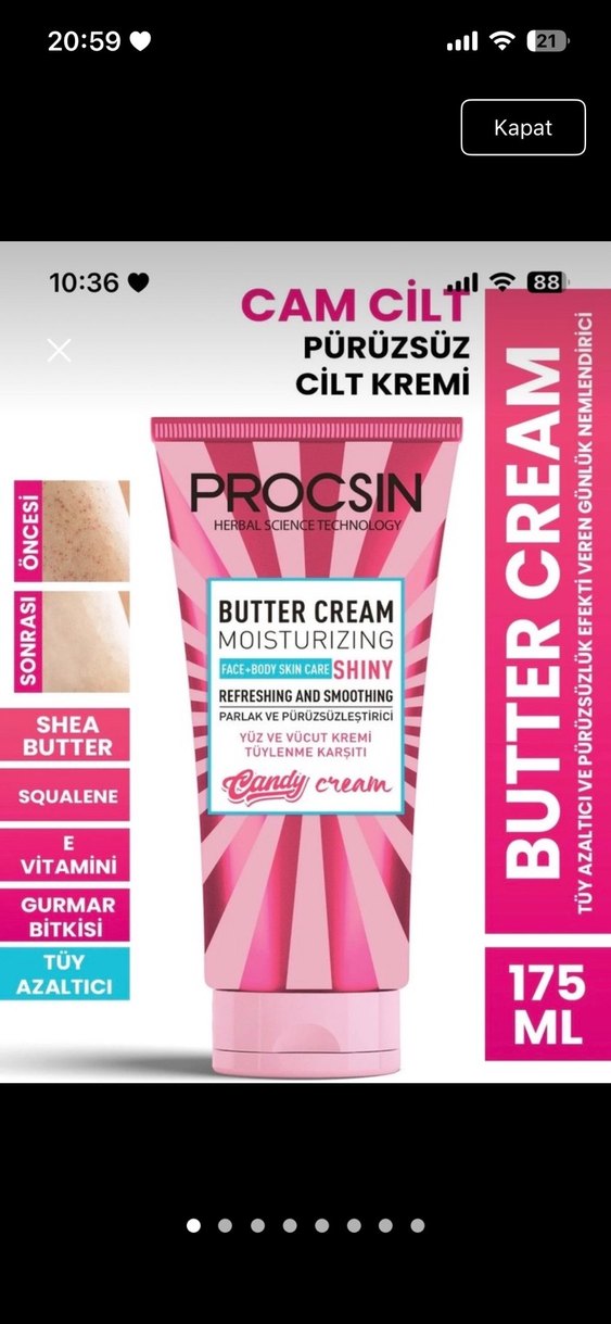 Procsin Butter Cream 175 ml Pürüzsüzleştirici Vücut Kremi