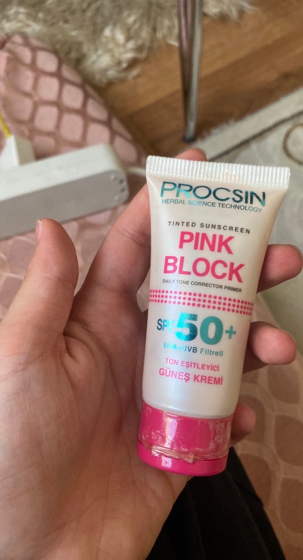 PROCSIN Pembe Ton Düzenleyici Güneş Kremi SPF 50+ UVA/UVB filtreli, ton eşitleyici özellikli günlük koruyucu güneş kremidir. ☀️