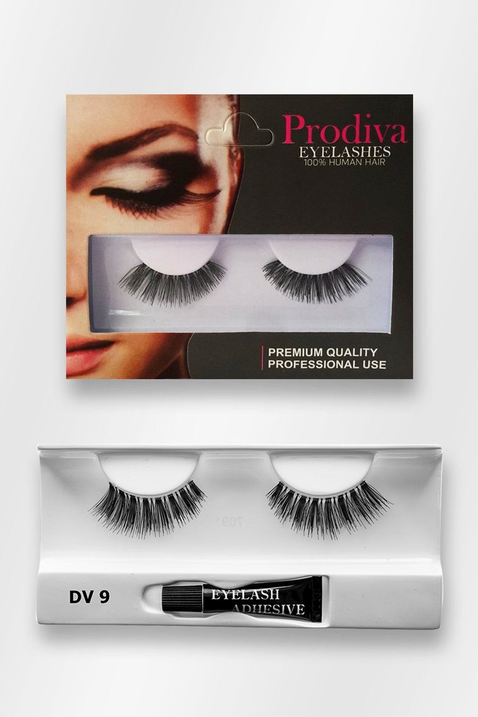 DV9 model Prodiva 100% insan kılından yapılan, profesyonel kullanım için tasarlanmış premium kaliteli kirpikler. Kolay uygulama için yapıştırıcı ile birlikte. Kutu içeriğinde 1 çift takma kirpik ve 1 adet 2 gr yapıştırıcı bulunmaktadır. Tekrar kullanıma uygundur. El yapımıdır ve oldukça kalitelidir.