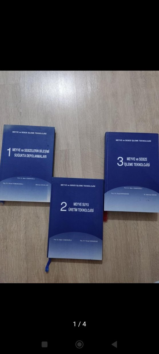 Meyve ve sebze işleme teknolojisi üzerine üç üniversite kitabı seti; bileşim, soğuk depolama, meyve suyu üretimi ve işleme tekniklerini içerir.
