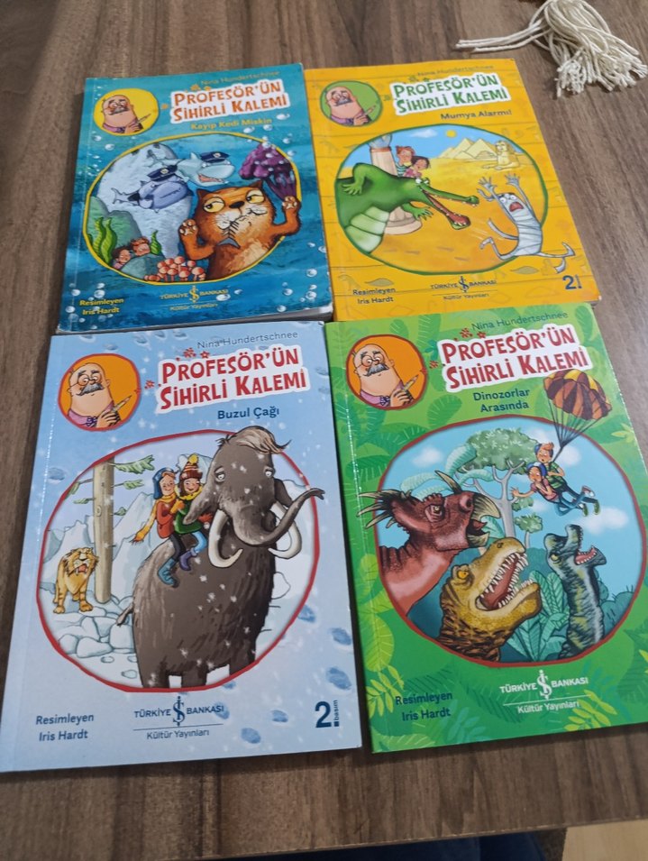 Profesör'ün Sihirli Kalemi serisinden Buzul Çağı ve Dinozorlar gibi konuları içeren, Iris Hardt'ın resimlediği 4 çocuk kitabı seti.