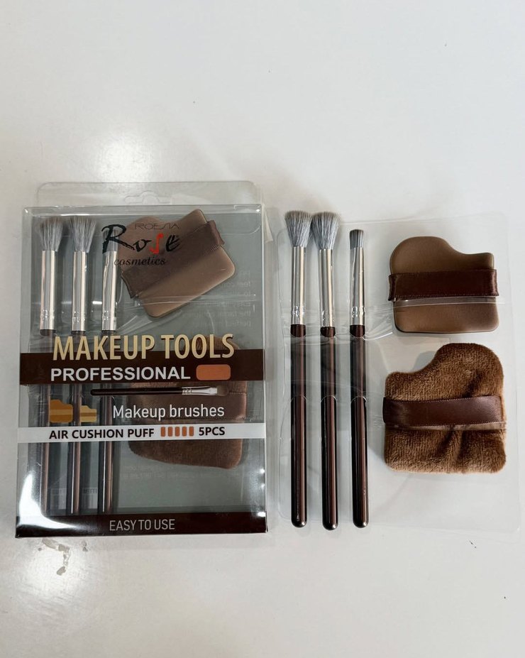 5 profesyonel makyaj fırçası ile hava yastıklı süngerler içeren set. Kolay kullanımlı, hassas makyaj uygulaması sağlar. ️