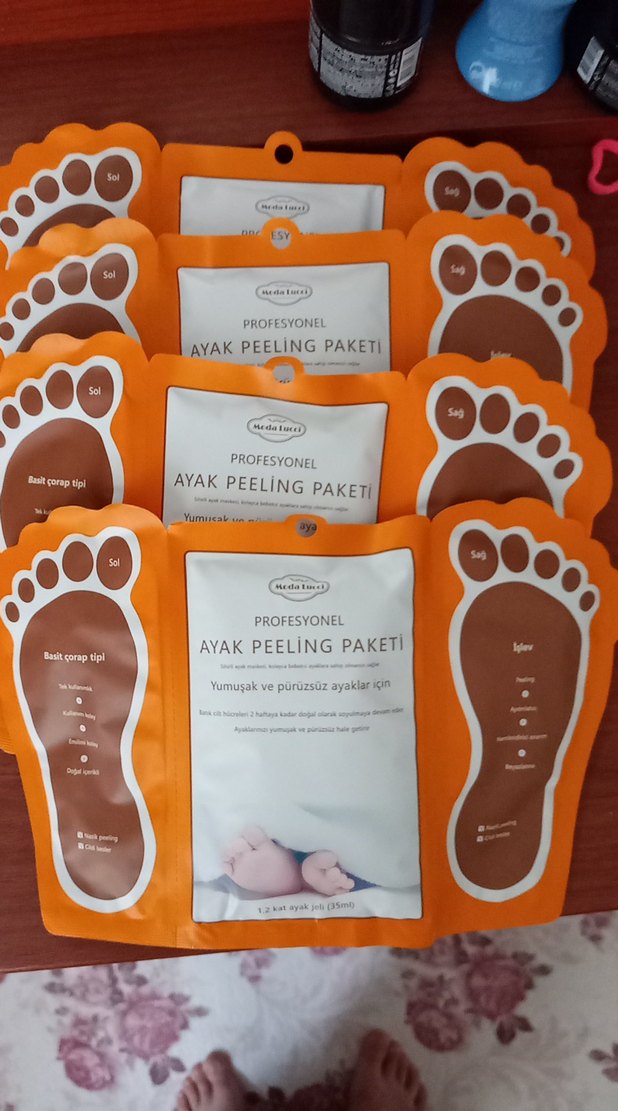 Yumuşak ve pürüzsüz ayaklar için profesyonel ayak peeling paketi. Sol ve sağ ayak için özel tedavi içerir. Adet fiyatıdır