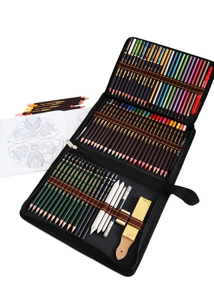 Çizim veya eskiz, kendinizi özgür bırakmanız, yaratıcılığınıza ilham vermeniz ve size mutluluk ve sevinç hissi vermeniz için fırsat verir! Paket içeriği: 24 x boya kalemi 12 x metalik boya kalemi 12 x suluboya kalemleri 12 x çizim kalemleri 3 x kağıt karıştırma kütükleri 1 x silgi 2 x kanca kalem 1 x buzlu tahta 1 x yetişkin boyama kitapları 1 x çift başlı kalem uzatıcı 1 x kalem kutusu Ürün sıfır ambalajında gönderilecektir Detaylı Bilgiler görsellere eklenmiştir. #boya #boyama #suluboyakalemleri #kırtasiye #kalem #kalemtraş #kalemuzatcı #fırça #profesyonel #72renk #kalemlik #sanat #sanatçı #hediye #doğumgünü