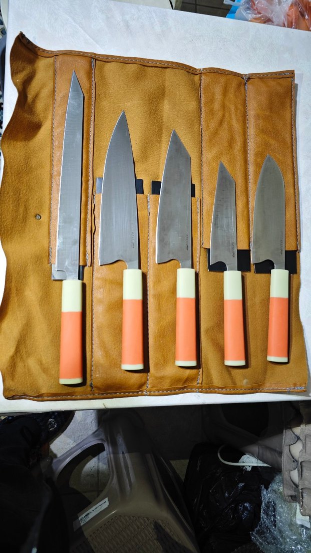5 adet mutfak bıçağı, kahverengi katlanabilir kılıf ile gelir