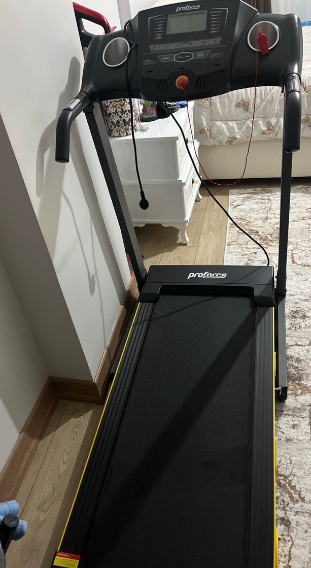 Profocce markalı koşu bandı, sarı detaylı koyu renkli baskılı koşu matına sahiptir. Dayanıklı çerçevesiyle iç mekan egzersizleri için uygundur. dijital ekranı 1 yıl garantisi mevcut 9 ayda 54 kg verdim sadece koşu bandında yürüyerek tavsiyedirrr