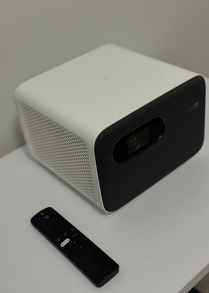 xiaomi projector pro 2 + otomatik projeksiyon perdesi. Perde özellıklerı:260*220 Otomatık kumandalı motorlu projeksıyon perdesı 4 K projeksıyon Küçük xıaomı’lerle karıştırılmasın Androıd ışletım sıstemı + kumanda